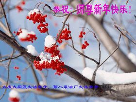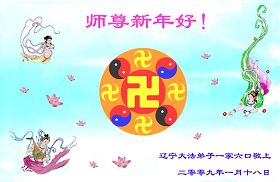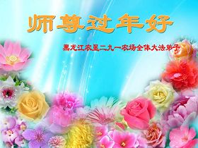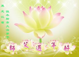 师尊:过年好!我们辽宁地区各级政府大法弟子向慈悲伟大的师尊致以最崇高的敬意!感谢师尊的慈悲苦度!在这值千金、值万金的时刻,我们一定要抓紧时间,在修好自身的同时,讲清真相,救度众生,做好三件事。完成我们的史前大愿。愿师尊多一份欣慰,少一份操劳。盼望师尊早日归来。