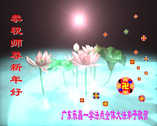 恭祝慈悲伟大的师尊新年快乐,万事如意!弟子在新的一年里要静心学法,认真做好三件事,加快、加大救度众生的步伐,圆满完成我们的历史使命。