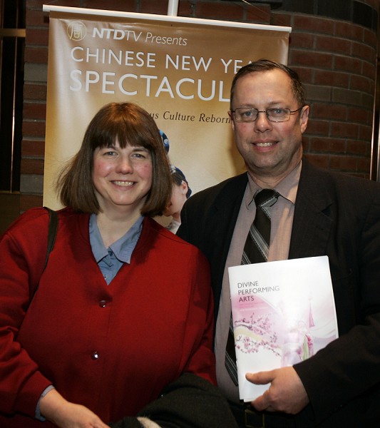 新泽西两位中学校长相邀一起带着女儿前来观看神韵晚会,他们是凯茜(Kathy Young)和卡尔(Kall Brancado)。他们对晚会都赞不绝口。他们表示晚会的舞蹈、韵律、色彩带给人的是一种积极向上的力量,让人对未来充满希望。