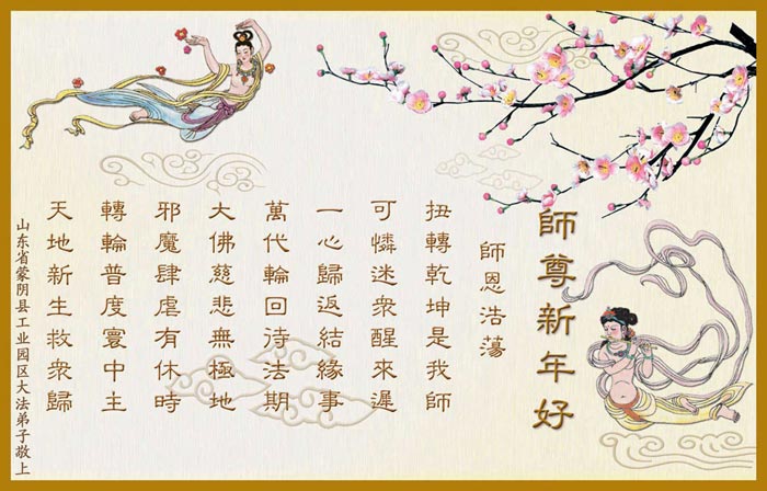 山东省蒙阴县工业园区大法弟子恭祝慈悲伟大的师尊新年好!