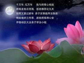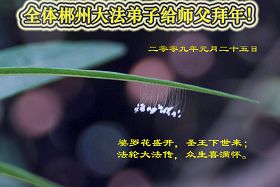 Master, please be assured, on the last leg of the journey we will cooperate well,study the Fa and improve together. We will do three things with even more diligence,so that more sentient beings can be saved,thanks to your enormous compassion。