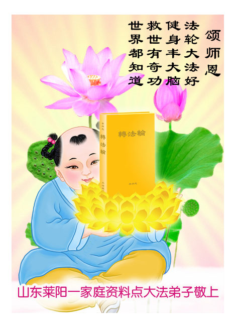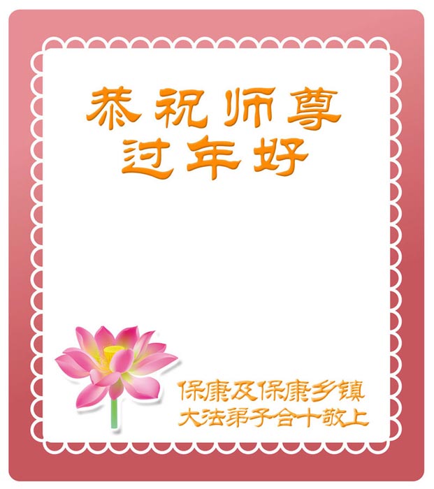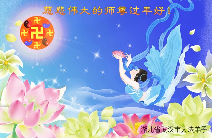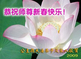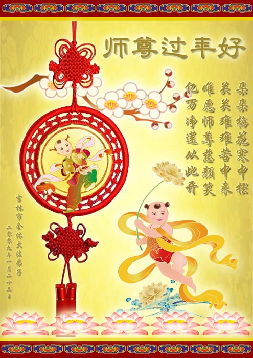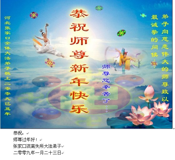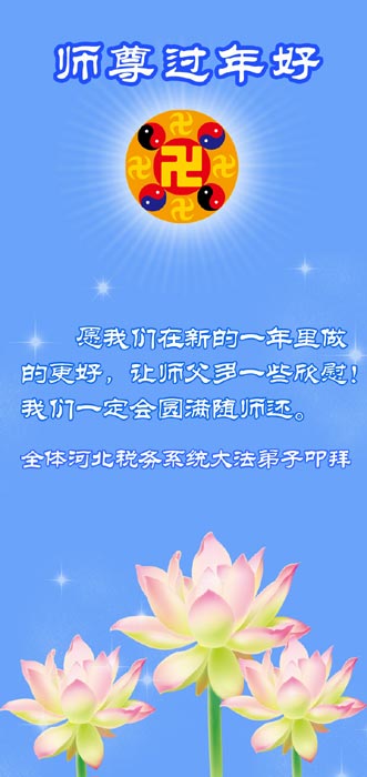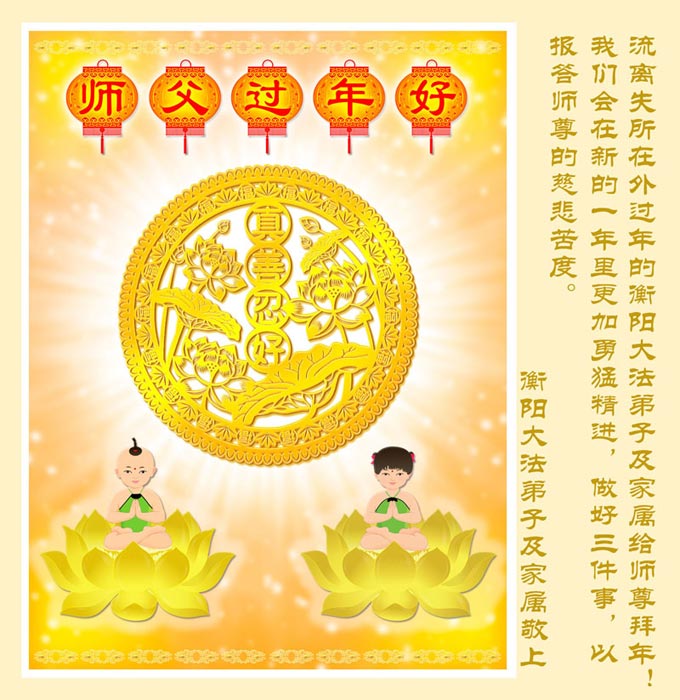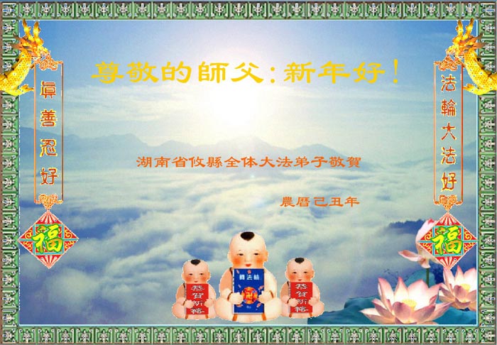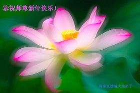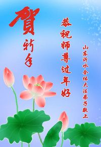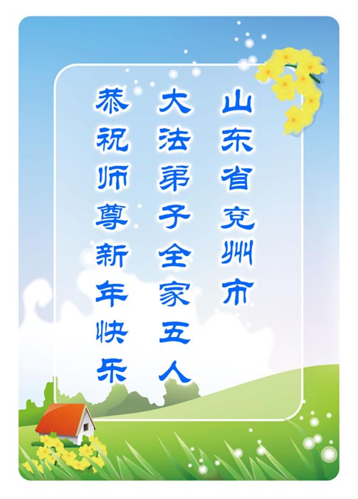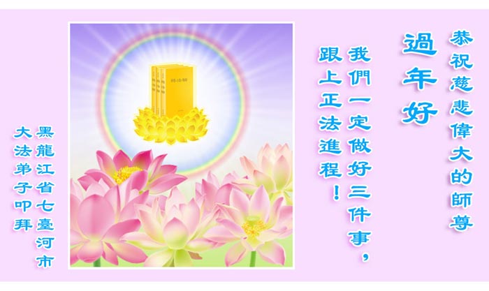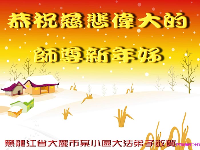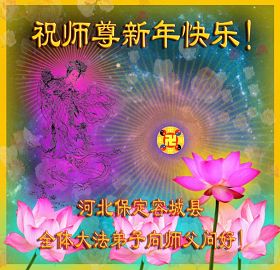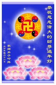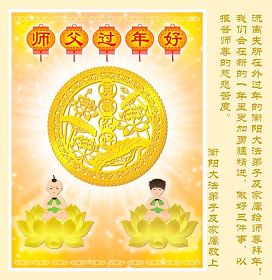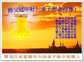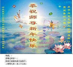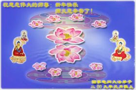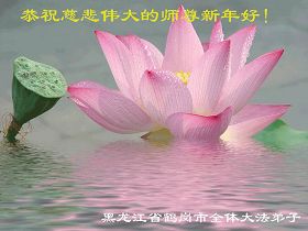 为了众生的得救,为了弟子们的修炼,您为我们费尽了心血。我们全家都有幸成为了大法弟子,感受着师恩的洪大,值此新年到来之际,我们用我们最恭敬的心,敬祝师尊新年快乐。