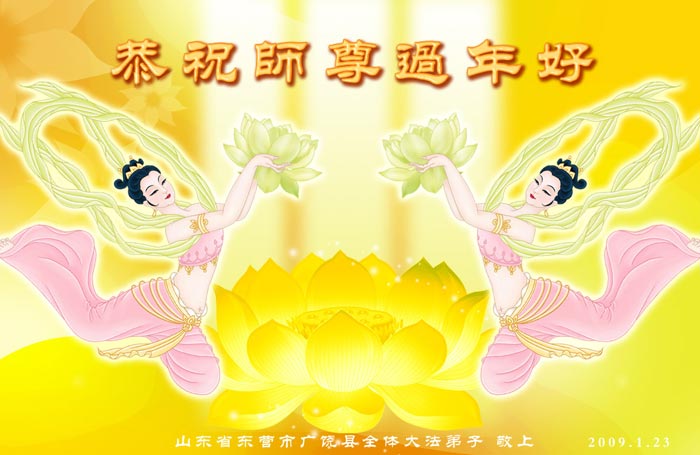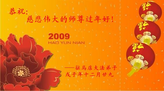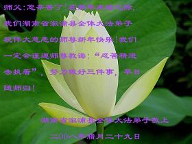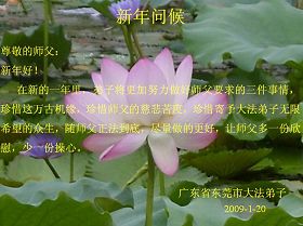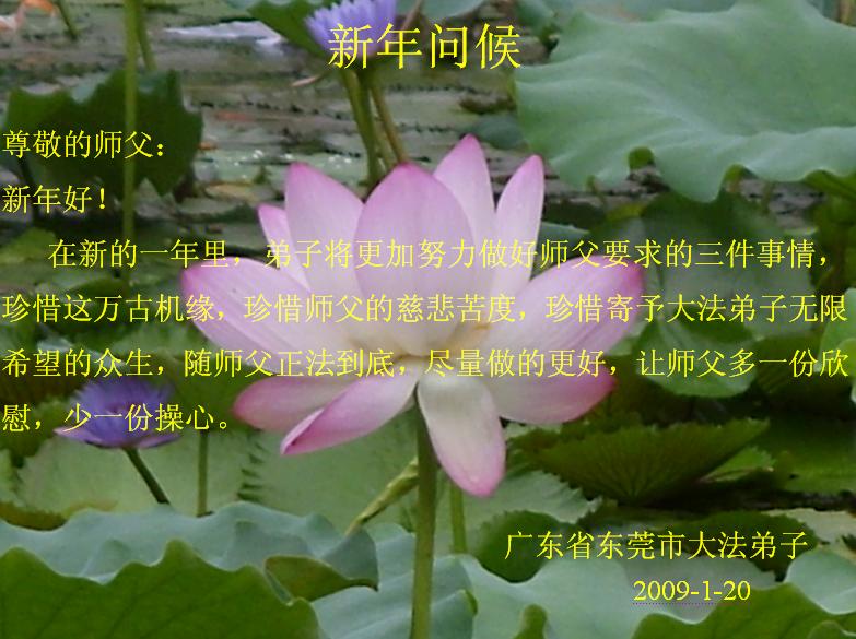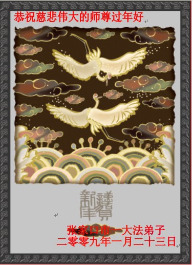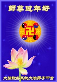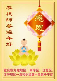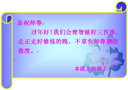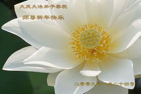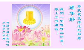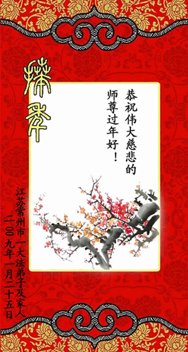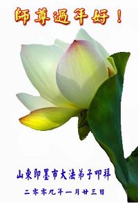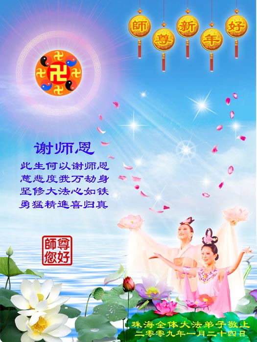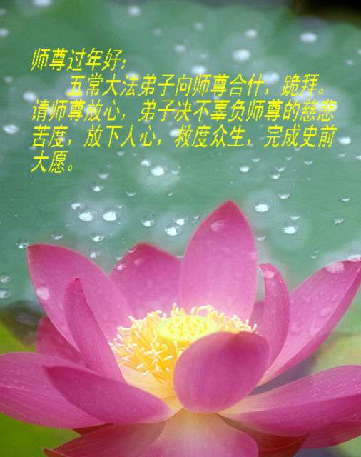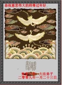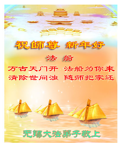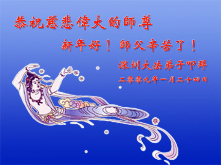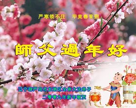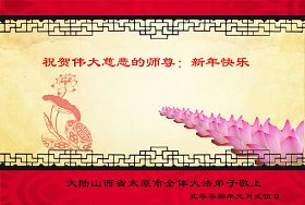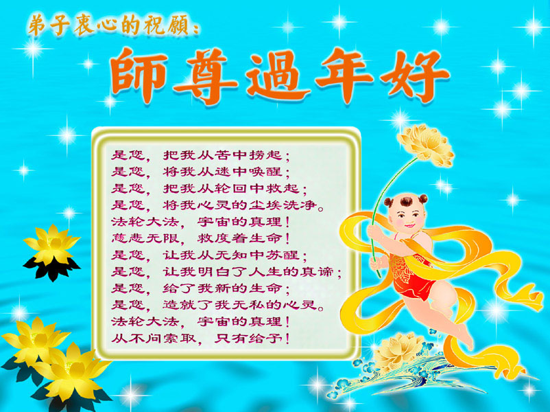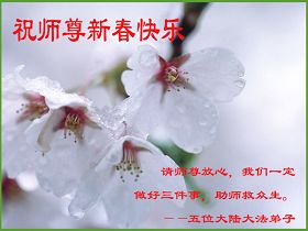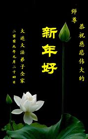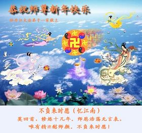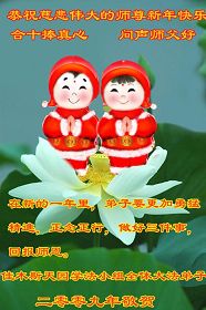 新年来临,弟子恭祝师尊过年好!在新的一年里,弟子一定珍惜万古不遇的机缘,不辜负师尊的救度洪恩,多学法,去私心,向内找,多救人。