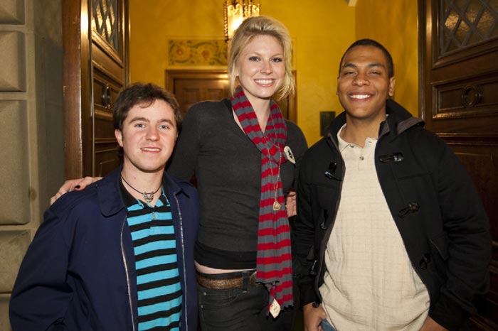![]() 好莱坞演员Barnaby Barrilla(右)和朋友Katie Stegeman(中,演员)及Kevin Ryan(平面设计师)一同来观看演出。 |