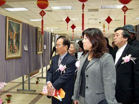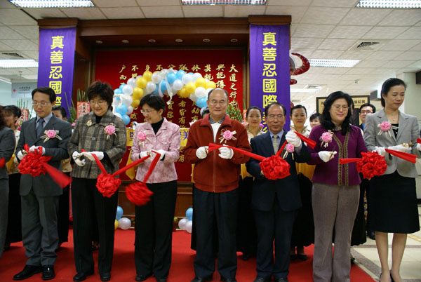 ![]() 真善忍国际美术巡回展览,一月五日在桃园县政府大厅揭幕,图左至右为桃园县政府社会处处长张锦丽、桃园县议员林丕章、行政处处长邱明俊、县议员邱素芬、刘俊义、新三才文化协会理事长张锦华、县议员万美玲。 |