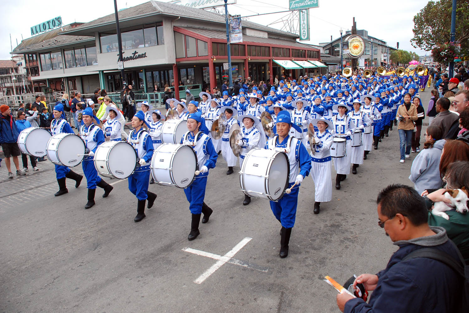 ![]() 法轮功学员的队伍经过旧金山鱼人码头 |