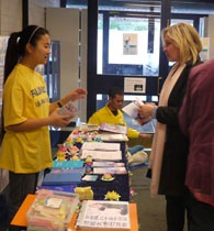 听闻中共对法轮大法长达十年的残酷迫害,许多人在反迫害请愿书上签名。一位女士与家人在展览会上看到请愿书,她说:“这是一个重要的问题,我们必须签名。”他们还告诉学员说,不用给他们真相资料了,省给需要的人们。他们知道中共对法轮功的迫害,并且祝学员们好运。