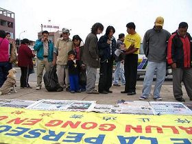 二零零六年三月,中共活体摘取、盗卖法轮功学员人体器官的暴行曝光,秘鲁法轮功学员利用图片展示、征签和写信等各种方式向各界民众和政府讲真相,揭露中共罪行。