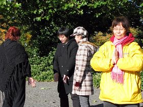 ![]() 法轮功学员在菲英岛尼堡市(Nyborg)展示法轮功功法 |