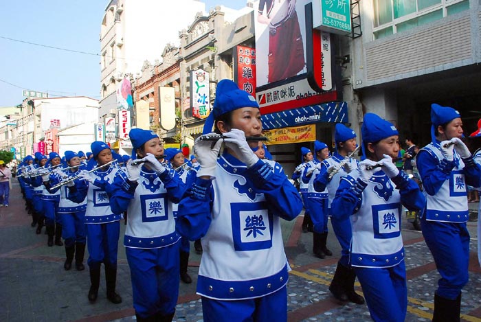 台湾法轮大法“天国乐团”成立两年多来,已数十次受邀参加各县市的庆典活动,如二零零七年全国运动会开闭幕表演、二零零八年台湾灯会等,受到观众好评。台南市市长许添财去年参加全运会看到天国乐团的演出后,公开表示赞美:“天国乐团是从天上掉下来的礼物”。二零零七年与二零零八年,天国乐团更连续两年获得基隆市中元节游行主办方颁发的“最佳团体精神奖”。