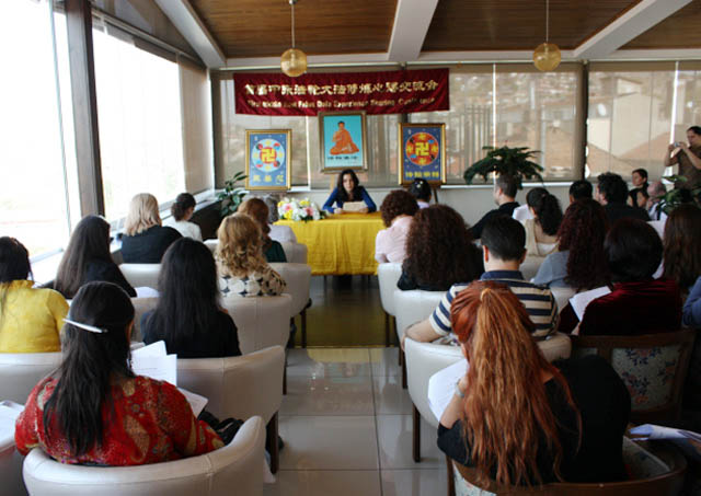 土耳其学员黛林(Derin)女士谈了自己如何平衡好修炼与家庭的体会。虽然她的丈夫曾给她很大的压力,不支持她修炼法轮功,但在丈夫脑溢血半身不遂后,她细心地照顾他和孩子,并一人承担了全部的家庭重担。她深有感触地说:“现在,我以往的害怕心减少了,勇气和自信在与日俱增。我觉得,对一个修炼者来讲,关键是要有正念,只要你有正念,就没有做不了的事情。”