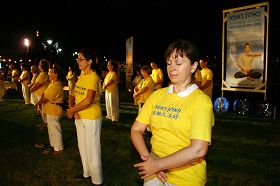 活动期间,法轮功学员表演了她们自编的舞蹈,婀娜柔美的舞姿吸引住在场的所有民众,人们以一阵阵的掌声来表达自己的喜悦心情。学员们还向民众展示了法轮功五套至简至易、祥和的功法;许多游客表示对功法很感兴趣。