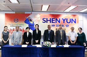 ![]() 二零零九年十月四日举行的神韵晚会介绍会上,宣布神韵艺术团将于明春光临香港。 |