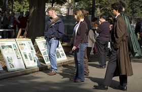 十多位中西方嘉宾在集会上发言,他们纷纷谴责中共政权的反人类暴行,并奉劝海内外中国人及早明白真相,退出中共。活动过程中,两排长长的真相展板以及阵阵唐鼓,“滚滚退党潮”大合唱,吸引着路人驻足观看。很多人停下来听义工们讲解法轮功无辜遭受中共迫害的真相。