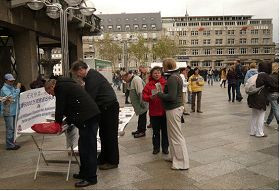 【明慧网二零零九年十月九日】二零零九年十月一日到四日,德国科隆大教堂广场上举办了主题为“支持六千万同胞退出中共邪党”大型信息日活动,展位吸引一波又一波的行人驻足观看,使更多人进一步了解中共酷刑迫害信仰“真善忍”的法轮功学员,许多过往民众了解真相后签名支持制止迫害,并支持中国人民脱离中共邪党组织。