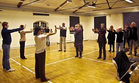 ![]() 研讨会上,人们认真学炼法轮功 |