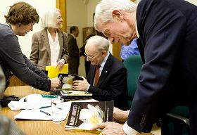 二零零九年十一月十六日,加拿大国会“法轮功之友”在国会主办《血腥的器官摘取》新书发布仪式。两位作者为读者签名留念。