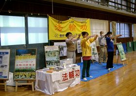 ![]() 法轮功学员在名古屋大学自由市场上演示功法。 |