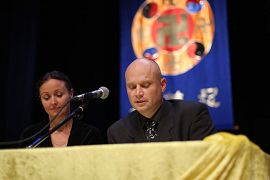 瑞典学员克里斯蒂娜和温纳-克林纳特夫妇在会上和大家交流了在瑞典巡回向人们讲述法轮功十年遭受中共迫害的事。过程中,坚定不退缩,对同修耐心,永远把救度众放在第一位,宽容同修之间的差异,在走向圆满的路上,用善互相帮助。