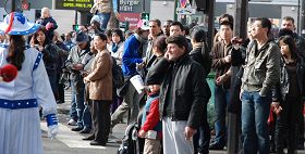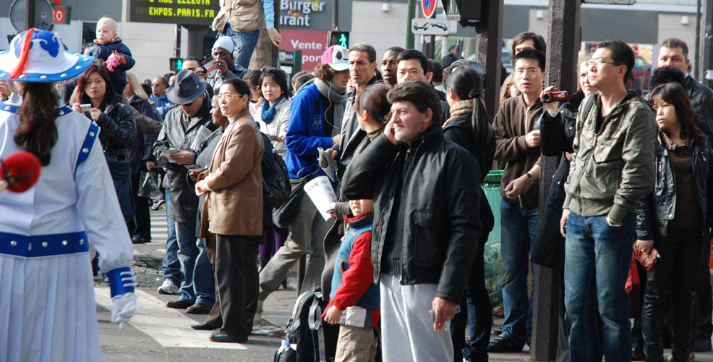 游行队伍浩浩荡荡,穿过华人商业街区,到达市政府所在地 Hotel de Ville。一路引来许多路人的观看和询问。众多的华人拿出手机或相机留下这一幕。