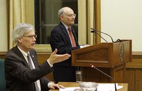 加拿大“国会法轮功之友”主席苗锡诚(左)
