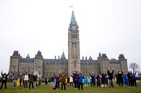 十一月二十五日,上百名法轮功学员在加拿大国会前呼吁哈珀政府中国之行提出法轮功受迫害的问题,并要求释放被中共非法关押的十四位加拿大人的亲属。