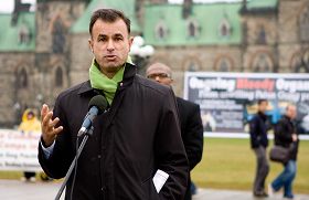 国会议员基施•马丁(Keith Martin)在集会现场演讲。