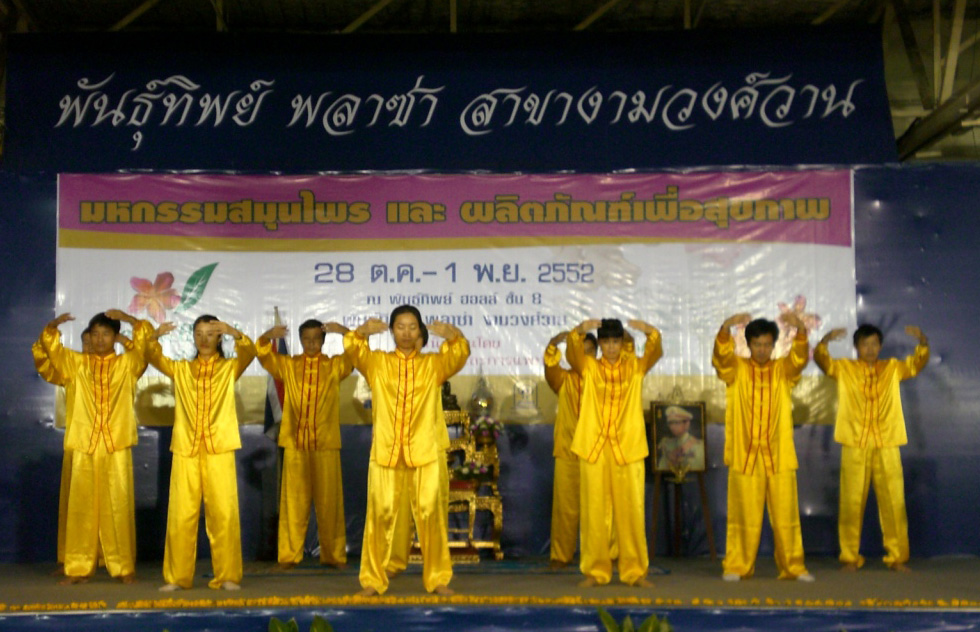 ![]() 法轮功学员每天在博览会的舞台上表演法轮功功法,并有学员在旁讲解,及介绍在中国发生的迫害。 |