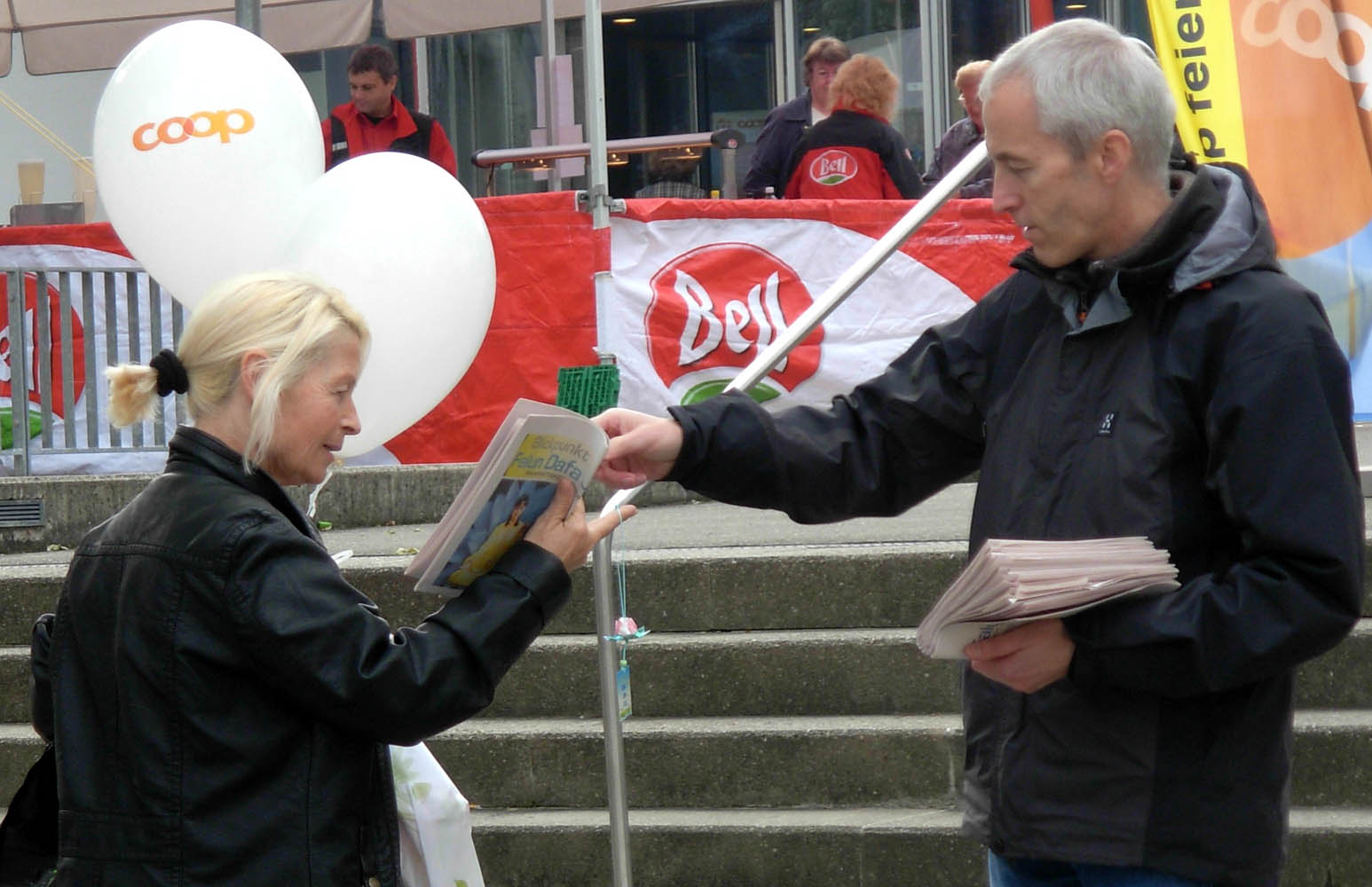 莫妮卡是在当地报纸Seeblick(湖景报)上看到一篇文章,介绍法轮功是一种对身心都有益的中国传统功法,不仅有五套缓慢圆的功法,还教人以“真善忍”生活,让人们生活和谐,减少压力。修炼法轮功不仅能获得身体健康,而且还能找回内心的祥和和真正的自我。有兴趣的人可以在每周五去罗曼宗(Romanshorn)的炼功点免费学炼法轮功。她说:“当我在报纸上看到关于法轮功的文章时,我就决定今天一定要来这个信息摊位。”