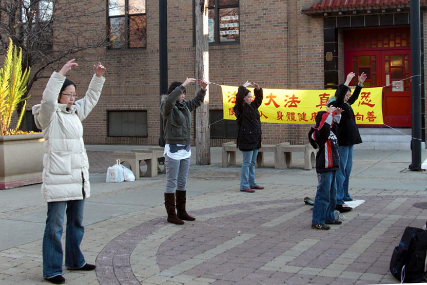![]() 法轮功学员演示功法 |