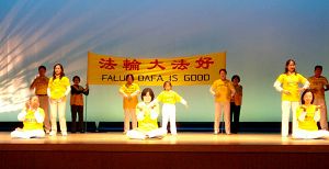 ![]() 法轮功学员在文化节的舞台上演示功法 |