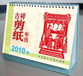 第四步:从长边中间裁切开,沿顶部装订,即为两份年历。