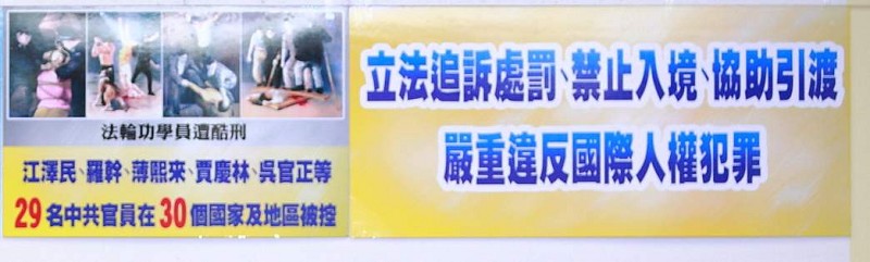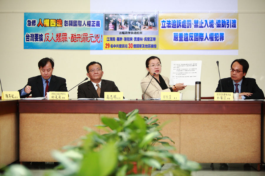 立法委员田秋堇在记者会上列举实证,揭露中共迫害法轮功学员的罪行:台湾九十岁老人家李善桢的女儿李燿华(六十三岁,香港籍)和外孙女张轶博因为在上海发三十张法轮功简介,半夜同时被绑架,失踪达五个月之久。在偌大的上海找不到一位律师敢为她们辩护,后来必须远赴北京才找到一位维权律师帮忙。