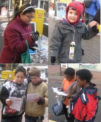 图片:德国小朋友得到介绍法轮功的莲花书签和资料很高兴