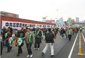 陈云林抵达台湾前夕,数万台湾民众集结游行抗议。路过的游行队伍纷纷向平和的法轮功学员致意,竖起大拇指高喊:法轮功加油!声援的呼声此起彼落。