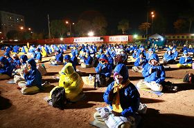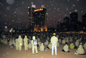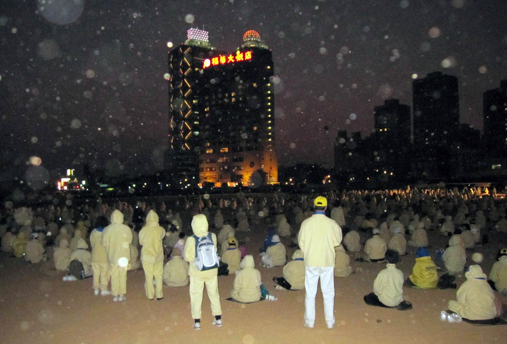 ![]() 入夜后温度只有十度左右,上千名法轮功学员依然留在裕元酒店对面大空地继续呼吁制止中共迫害法轮功。值班的警察私下说,“真的辛苦他们了,他们真的令人感动。” |