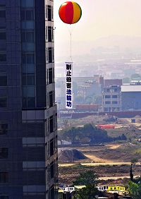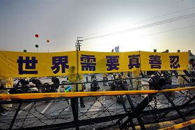 【明慧网二零零九年十二月二十三日】“注意喔!我们车子经过这里的时候,喇叭音量就转小声点!”台湾台中抗议江陈会的宣传车,在会场不停盘旋来回。车上人士透过扩音器等音响设备,慷慨激昂地表达他们对陈云林与中共的“呛声”。然而,只要一行经法轮功学员静坐抗议中共迫害的地点前方,原先语带义愤的活动指挥者倏忽语气大转,轻声细语地提醒车上司机将喇叭音量调低。