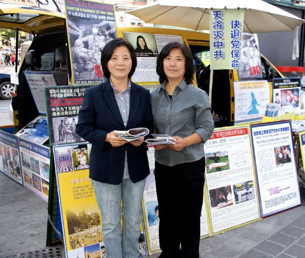 【明慧网二零零九年十二月二十六日】徐女士,从事插花艺术设计,并曾担任一家插花艺术学院的院长;从事美术创作的河女士,曾担任一家美术学院院长。五年前,一个共同的心愿让这两姐妹走到了一起,她们放弃了理想的事业和丰厚的收入,在韩国首尔明洞购物区摆起了露天真相点,呼吁各界人士共同关注并制止中共对法轮功学员的残酷迫害