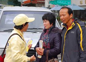 ![]() 七十多岁的老婆婆也发传单讲真相 |