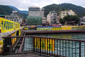 ![]() 德化码头布满“制止中共迫害法轮功”、“法轮大法好”的横幅 |
