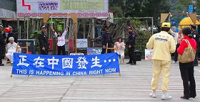 ![]() 各码头四周有法轮功学员向游客讲述迫害真相 |
