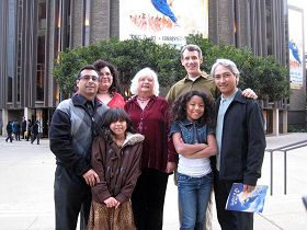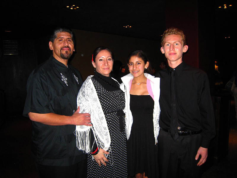 墨西哥民族舞蹈演员巴里奥斯(Ricio Barrios)(左二)全家来观看神韵晚会。