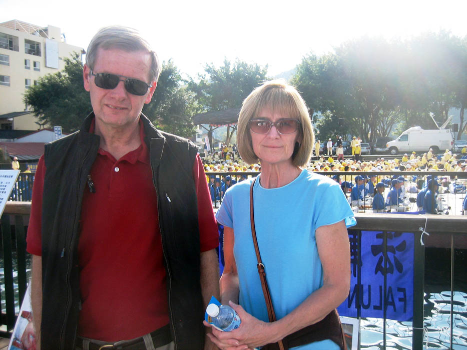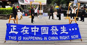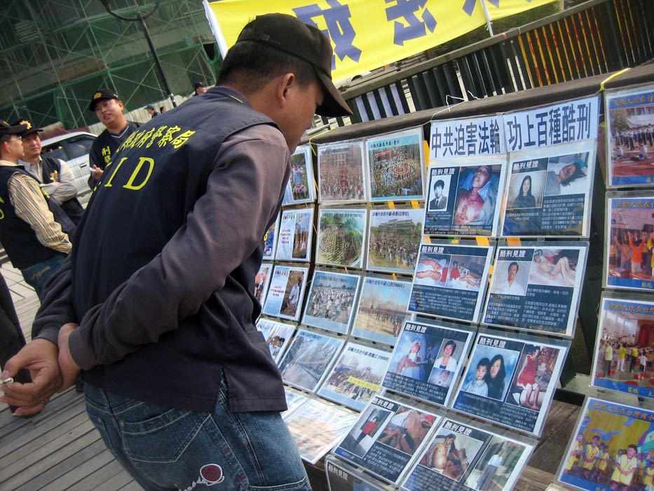 有一对穿着入时的大陆游客夫妇,刚开始时,看到到处都是法轮功的横幅,很生气地质问警察,为什么可以让法轮功在这里集会、挂横幅。警察表示,台湾是自由民主的,不会干涉信仰自由,法轮功的活动是经过申请核准的。这对大陆夫妇原本很不以为然,但是经过法轮功学员带着他们看了真相照片及酷刑展后,他们看清了中共的邪恶,最后这夫妇俩也以化名与中共划清了界限。