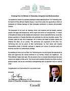 ![]() 加拿大总理哈珀 (总理办公室提供) | ![]() 哈珀给神韵晚会的贺信 |