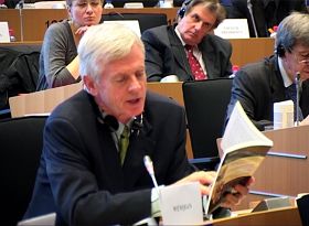 来自加拿大的前国会议员大卫•乔高应欧洲议会邀请,针对法轮功学员所遭受的迫害情况发言。他讲到,法轮功学员是被中共迫害最严重的。他和大卫•麦塔斯最近出版的新书《血腥的器官摘取》中,以大量的调查结果证明无辜的法轮功学员被杀害、器官被摘取和贩卖这一骇人听闻的罪行;人们对此不能无视。