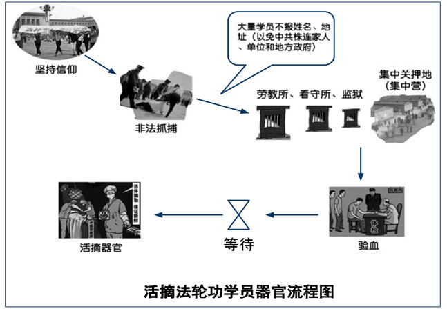 根据报道出来的消息,活摘法轮功学员器官的流程图基本如下: