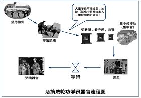 根据报道出来的消息,活摘法轮功学员器官的流程图基本如下: