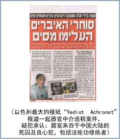2006年11月17日,以色列最大的报纸“Yediot Achronot”发表了一篇题为“器官中介人逃税”的 报道。文章说,一周前以色列警方逮捕了四名器官中介人,他们是Medikt公司的总裁雅伦•尤杜丁(Yaron Izhak Yodukin)和他的同伙。他们被捕的原因是没有申报为以色列人到中国和菲律宾移植器官作中介而赚取的数百万元,涉嫌逃税。报导说,被逮捕的其中主要疑 犯向以色列一家报纸承认:器官来自于中国大陆的死囚及良心犯,包括法轮功修炼者。