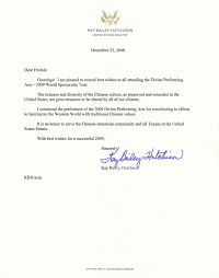 ![]() 姜申星一在演出前给神韵发来贺辞,观赏神韵后,更对神韵赞不绝口。 |
