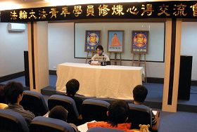 黄伟诚是嘉义大学四年级的学生,同时也是这次活动的主办人。以往黄伟诚都是报名参加的学员,但今年身为主办人,他觉得最不同的感受是更需要替他人着想与负责。三天的过程中,学员们早晨六点就开始在户外炼功,完整的炼完两个钟头后便开始一整天的学法交流。毕业于交通大学的王敬雅表示,这是一个很纯净的环境,许多人都能发自内心的把自己的心得体会与大家分享,她说:“觉得真的很好,场非常纯净。最后一天早上大组交流,好几个人一发言就开始掉泪,真的发自内心的感受到升华。”